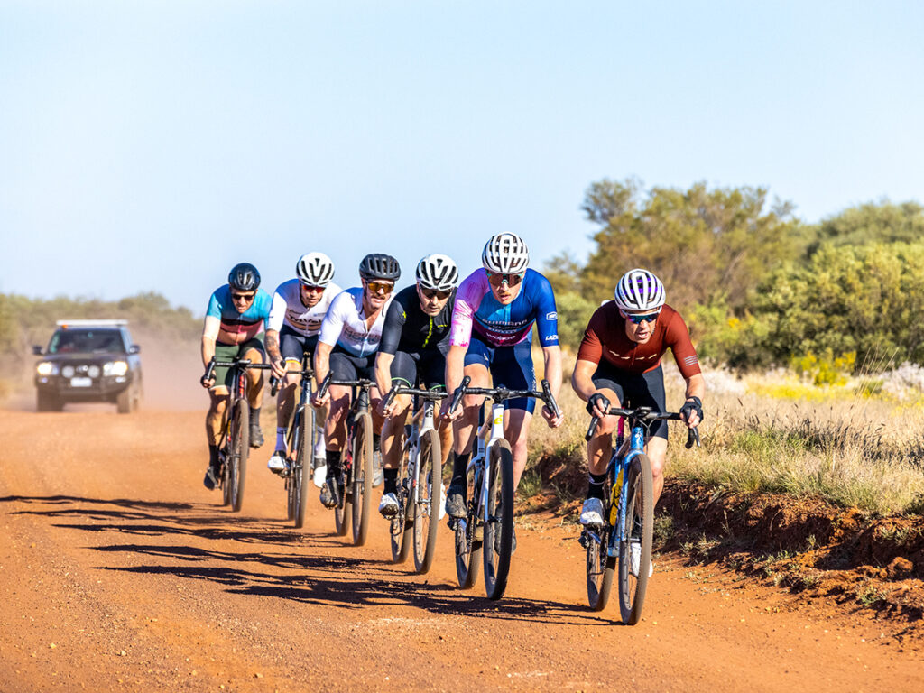 The Shimano Gravel Muster takes us deep into the outback – where roads disappear into a shimmering horizon with a cloudless blue sky overhead and the rolling red earth beneath your tyres. This is a landscape of subtle changes and brutal reality, where men and women become heroes in the dust or succumb to the unforgiving landscape in a slow demise.